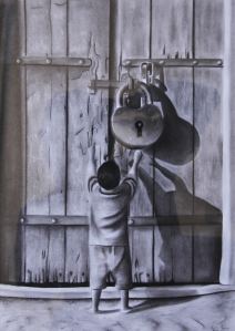 “Behind the locked gate, barred not just by the iron and brass but the weight of poverty, inequality and neglect. The child’s real walls that keep the dreams out of reach. Not just one but million have this silent cry – an answer Is not charity, it’s justice.”