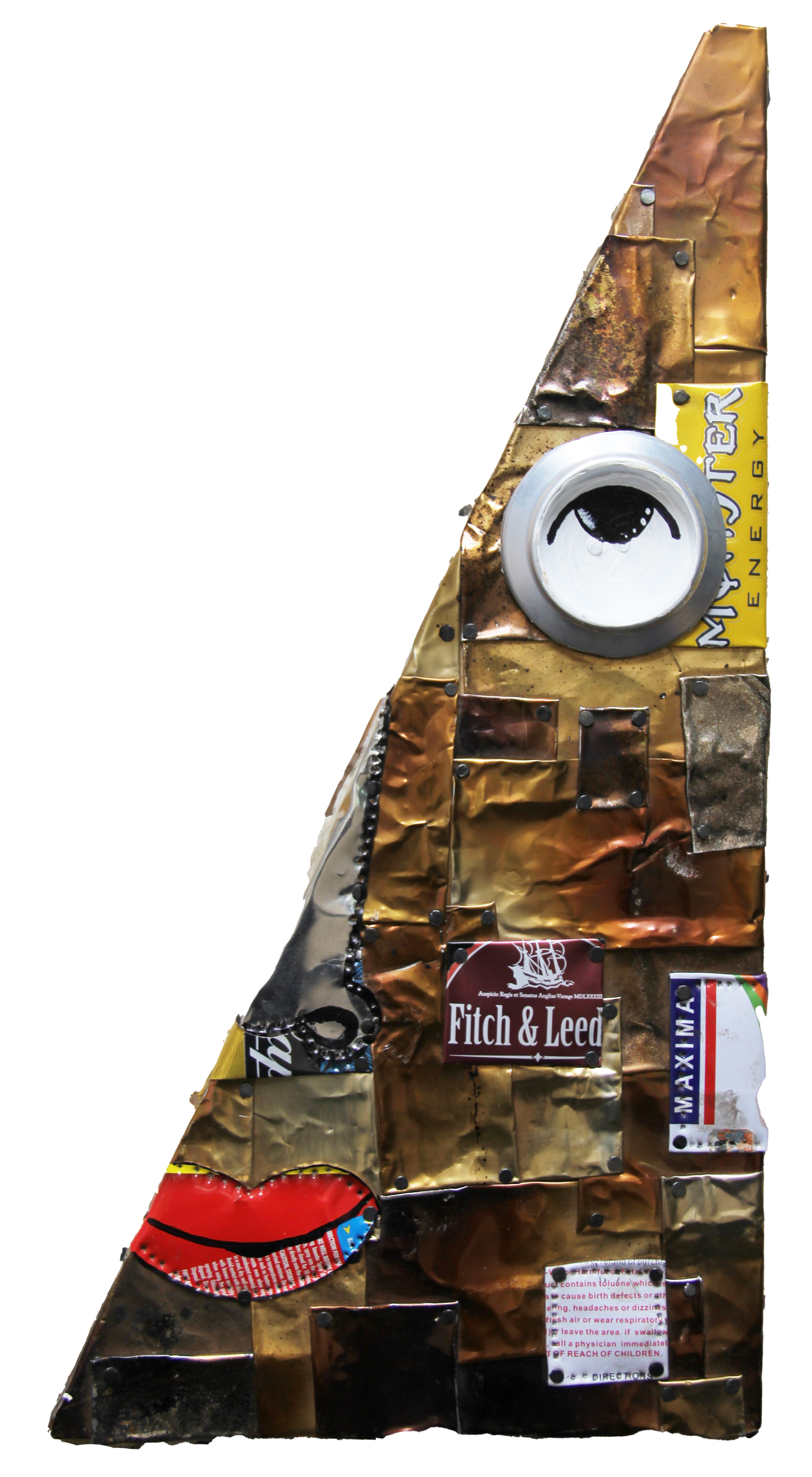 recycled beer cans on wood, 33x20cm