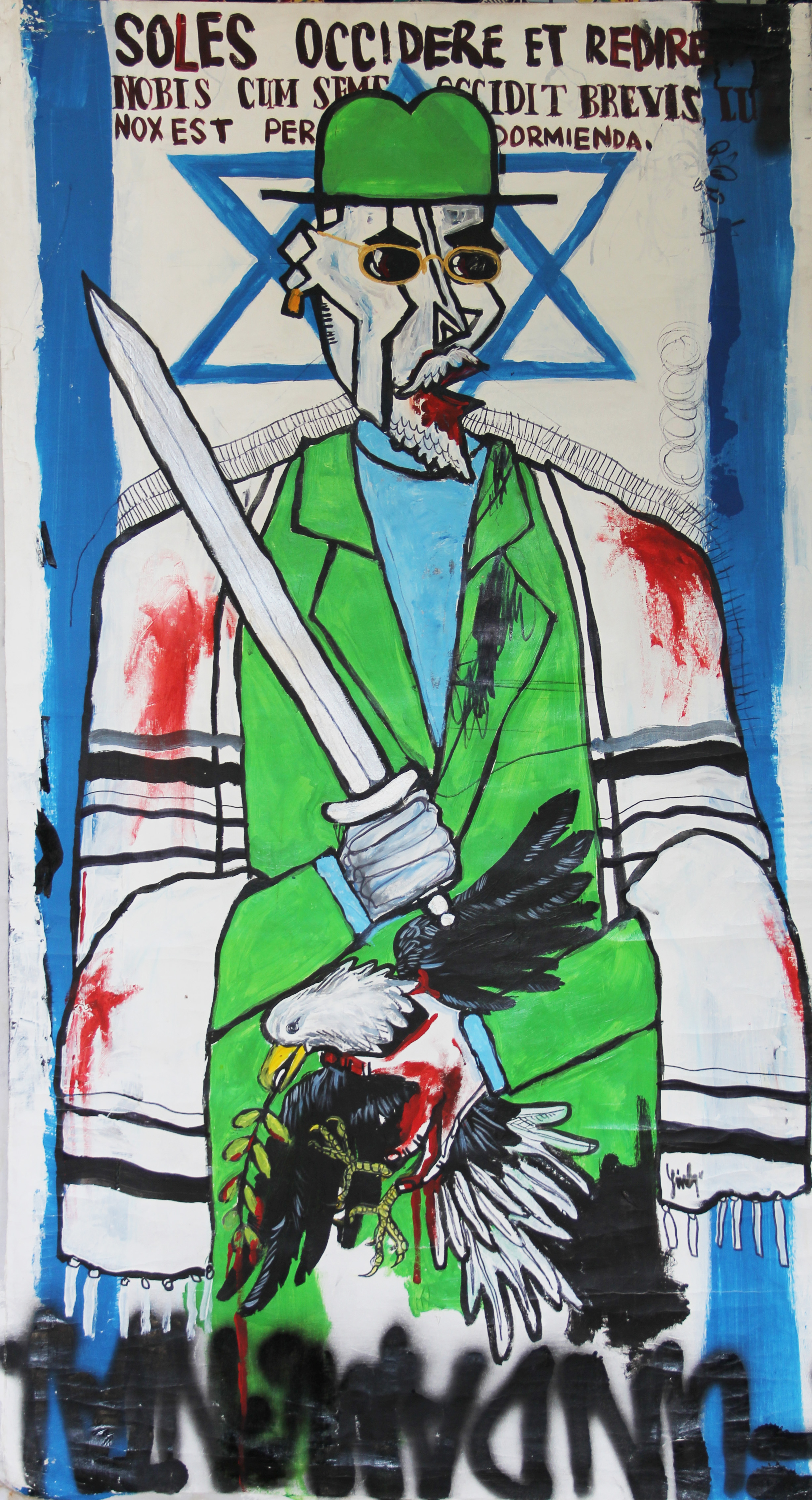 acrylic, oil, aerosol and aqueous acrylic paint, xylol ink on canvas, 125x70cm