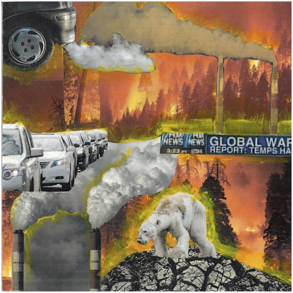ART PROJECT: “Under the guidance of Art Teacher Kurt Nicaise, Students were prompted to create a collage from harvested digital and print images, paper, fabric, and other art materials which focused on a selected topic of interest in the area of social and environmental justice.”
