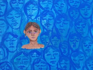 “This painting represents feeling alone and different in a crowd full of people who are all the same.”