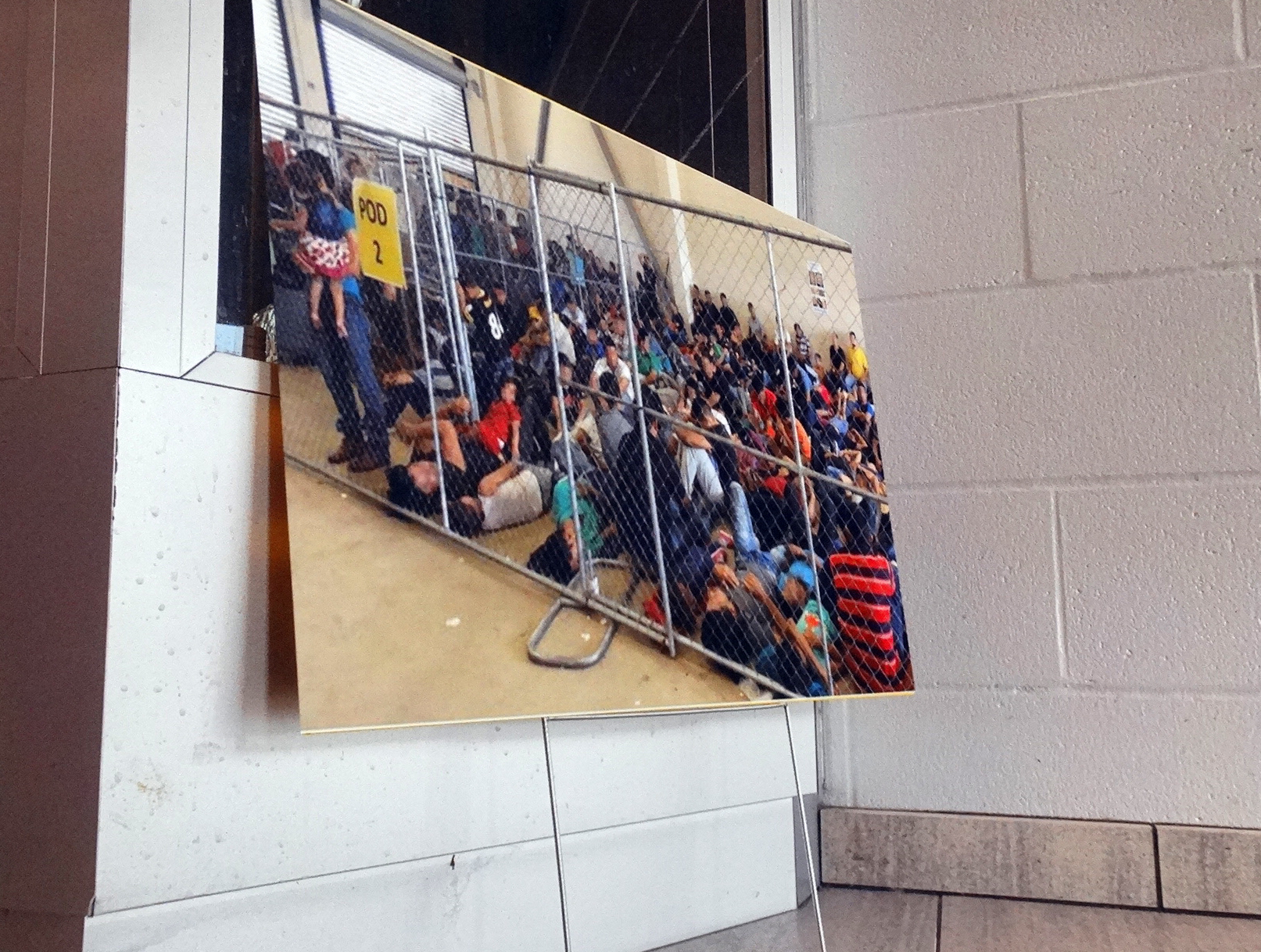 ART PROJECT: “Inspired by the work of Osamu James Nakagawa, Gordon Parks, and others, students, working under the guidance of art teachers Lindsay Holliday and Matt Reed, were asked to shoot a photo of a sign or billboard in a meaningful or familiar place, and then juxtapose onto it an image that they created or appropriated, that addresses an issue of peace or social justice. The students were challenged to consider issues that were meaningful to them and how they might present them in a work of art.”