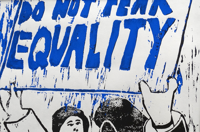 ART PROJECT: “Under the guidance of Art Teachers Melissa Ambs, Steve Groh, and Jamie Schorsch, students researched some of history’s most (in)famous events of civil unrest and justice and visually communicated the essence of those events through the relief printmaking format. The goal of the work was to communicate the importance of documenting the power of people who challenge the violation of Civil Rights through a media that can be mass produced. Kathe Kollwitz served as the inspiration for this project for her role in educating the people about the horrors of WWI and WWII through mass produced prints.”