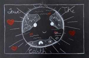 ART PROJECT: “Under the guidance of Art Teacher Matt Reed, students studied the work of Keith Haring, an artist known for using simple cartoons to communicate with the viewer. They were asked to draw something with a positive message or to address a social issue with their art. The students used red and white colored pencils on black paper, similar to some of Haring’s pieces. The project gave them a better understanding of how art can be used as a vehicle for personal or political expression.”