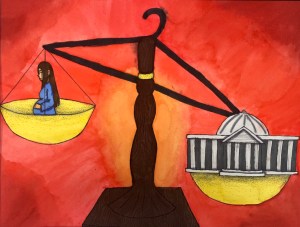“Women have been fighting for the right to choose over their bodies for a very long time. I’ve always been super passionate about this topic and wanted to show how the government considers itself more important than women. I drew a balance scale with the heavier end holding a government building, and the lighter end holding a woman. I used this symbolism to show how the government is considered more important than women. Women have fought for rights for a long time, and now we are going in the opposite direction with new laws taking away women’s right to choose over their bodies. I believe everyone should have the right to choose.”