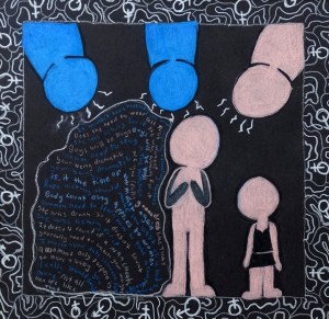 prismacolor pencil on black construction paper; 10×10”