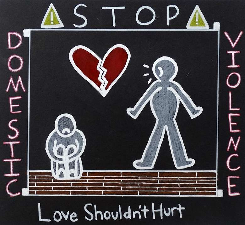 “Guided by either of art teachers Melissa Ambs, Steve Groh, Katie Jacobs, Jamie Schorsch, OHHS students, grades 9 to 12, learned about the graffiti style artwork of Keith Haring, and created a drawing in a similar style using symbolic imagery to communicate a message based on a social issue.”