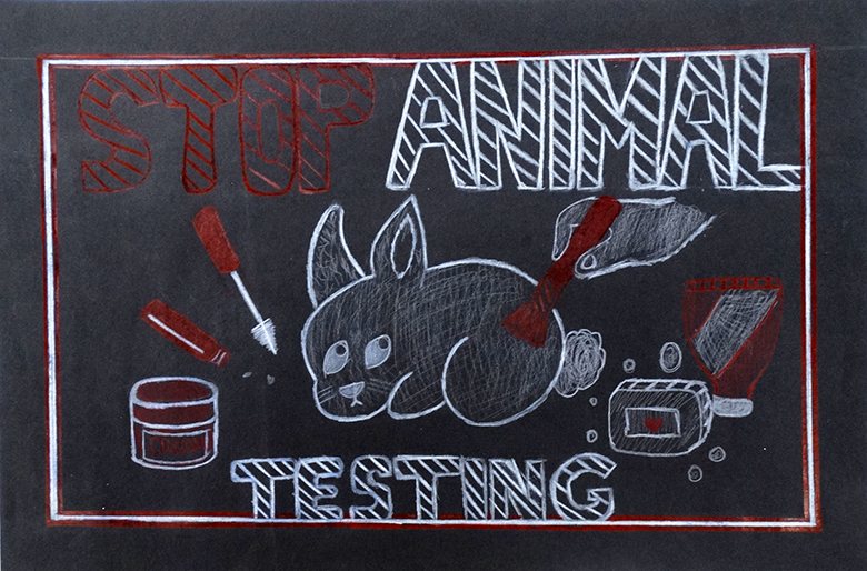 “Working under the guidance of art teacher Matt Reed, Princeton HS students grades 9 to 12 studied the work of Keith Haring, an artist known for using simple cartoons to communicate with the viewer. They were asked to draw something with a positive message or to address a social issue with their art. They used white and red colored pencils on black paper, similar to the color scheme in some of Haring’s pieces. The project gave the students a better understanding of how art can be used as a vehicle for personal or political expression.”