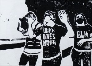 linocut print; 5×7”