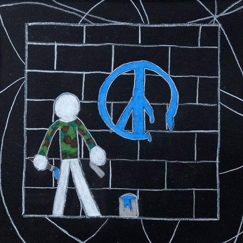 “Guided by either of art teachers Melissa Ambs, Steve Groh, Katie Jacobs, Jamie Schorsch, OHHS students, grades 9 to 12, learned about the graffiti style artwork of Keith Haring, and created a drawing in a similar style using symbolic imagery to communicate a message based on a social issue.”