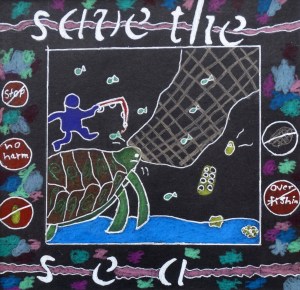 “Under the guidance of art teacher Jamie Schorsch, students learned about the graffiti style artwork of Keith Haring, and created a drawing in a similar style using symbolic imagery to communicate a message based on a social issue.”