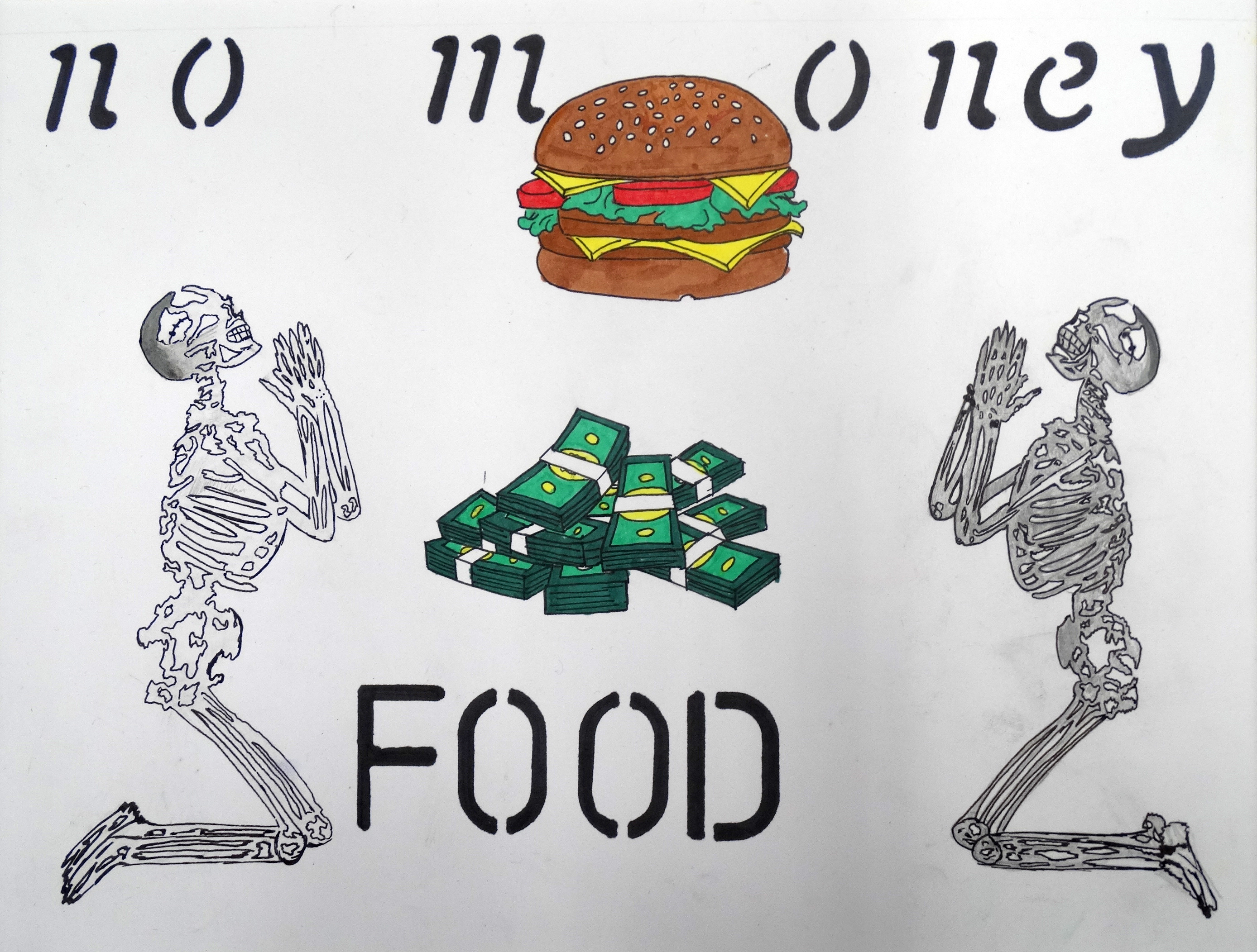 “Under the guidance of art teacher Jamie Schorsch, and after studying the street art of Banksy, students researched a topic related to one of the 17 United Nations Sustainable Development Goals. Their resulting artworks communicate, using appropriated and self created imagery.,their viewpoint on a related topic, a moral stance on a particular incident, and thoughts on an aspect that affects life.”