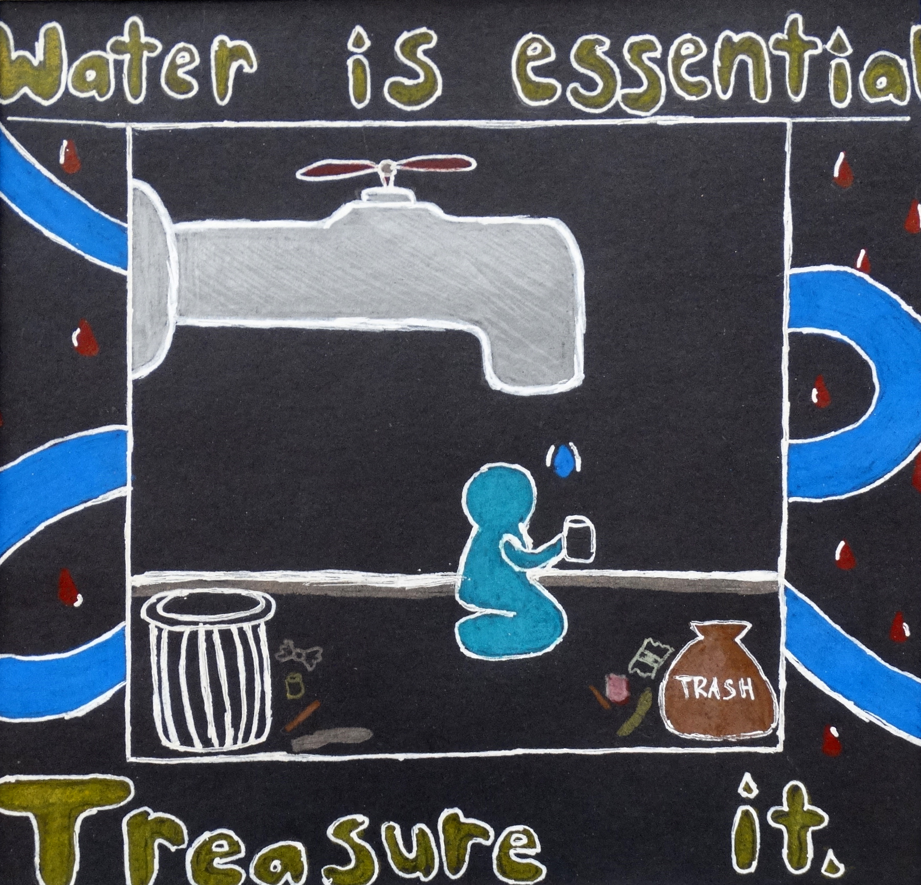 “Under the guidance of art teacher Jamie Schorsch, students learned about the graffiti style artwork of Keith Haring, and created a drawing in a similar style using symbolic imagery to communicate a message based on a social issue.”