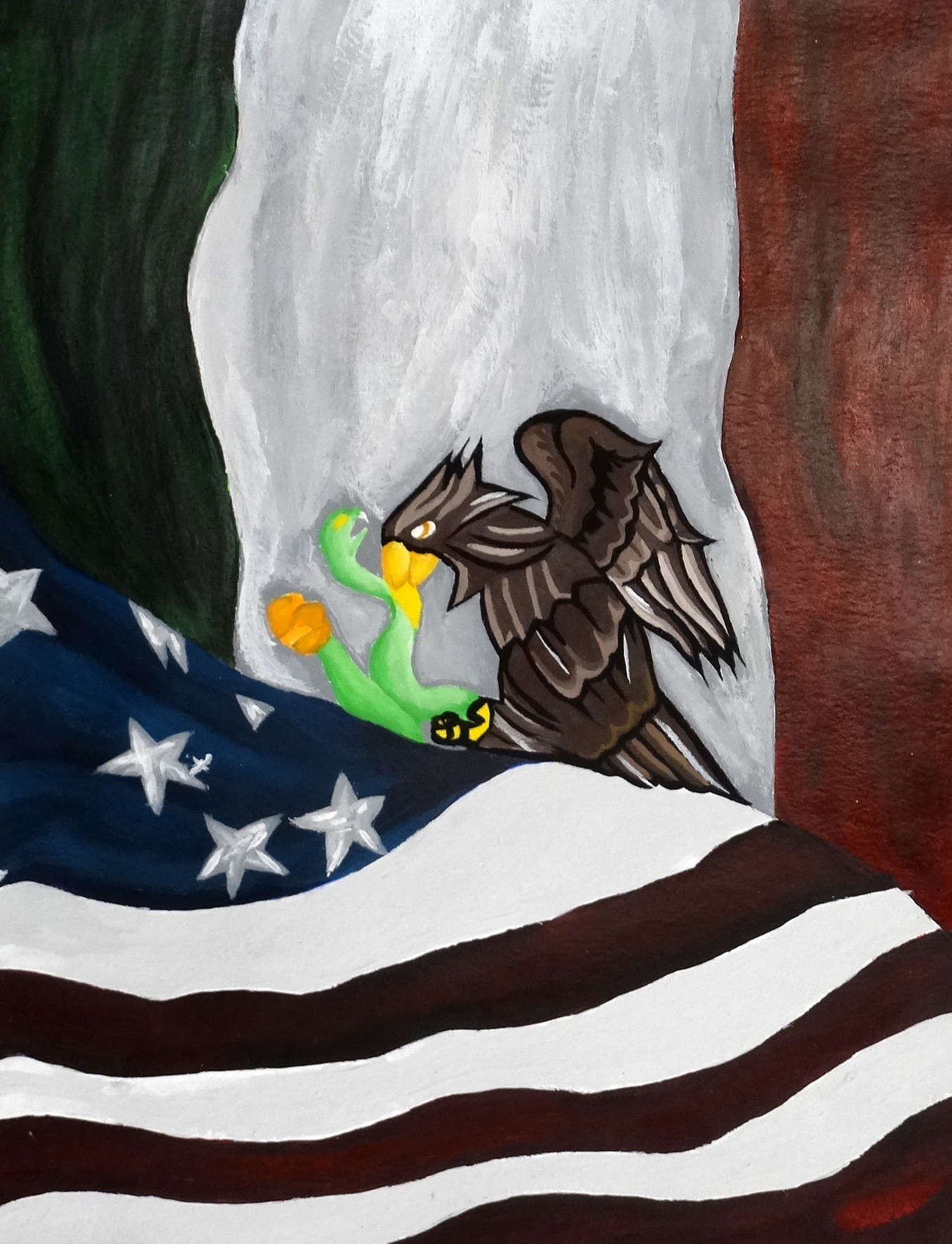 “My topic is about what it’s like growing up Mexican with an immigrant mother in America. My name Is Jacksiry Mendez, I am the only daughter of my immigrant Mexican Mother. When my mother first came to the United States, she was just my age, eighteen in 1998, she came with my dad along with my oldest brother Alex who at the time was five… Could you imagine that? Leaving the only place you know as home. My family came to the United States to work and take care of the family. They came in hopes of the American dream like every American hope to come true. I’ve decided to make this art piece in respect to my parents who have sacrificed everything to give me what I needed to succeed but to bring awareness to other kids who grew up with immigrant parents and went to American schools, that it is always nice, having to deal with the language barrier and not understanding people and the extreme racism we receive at school and the bullying. My Art piece is to give you the full outlook of what it’s like being children of Immigrant parents in America.”