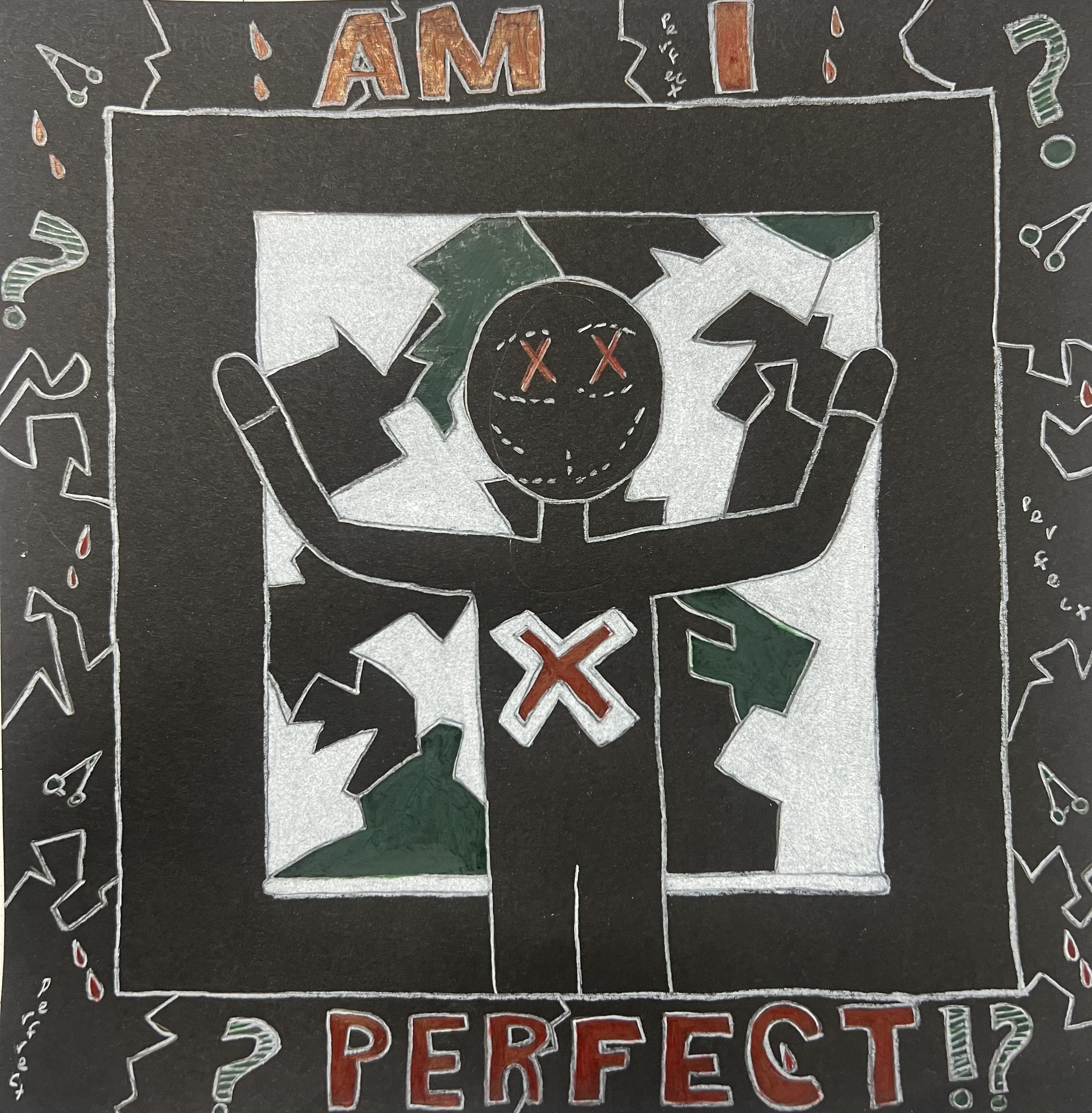 “Under the guidance of art teacher Melissa Ambs students learned about the graffiti style artwork of Keith Haring, and created a drawing in a similar style using symbolic imagery to communicate a message based on a social issue.”