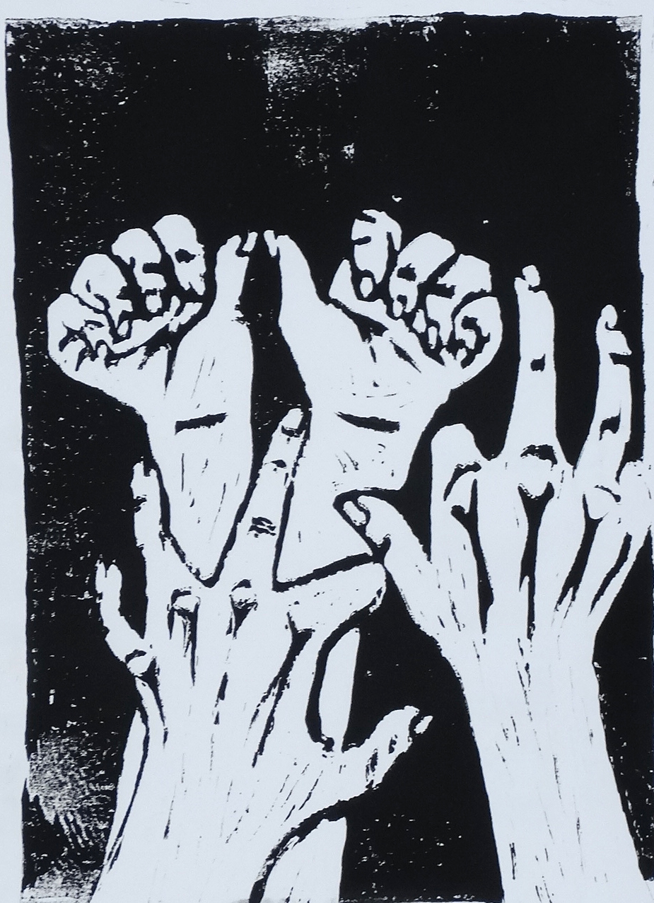 “I addressed sexual assault as a critical social justice issue, highlighting its pervasive impact on women and the fear it instills from a young age. Statistics reveal that 1 in 5 women will experience sexual assault, making it a deeply personal and urgent issue. My work focuses on visualizing the dynamics of a non-consensual interaction through simple