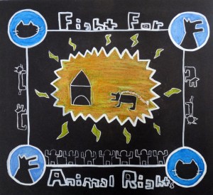 “Under the guidance of art teacher Steve Groh, students learned about the graffiti style artwork of Keith Haring, and created a drawing in a similar style using symbolic imagery to communicate a message based on a social issue.”