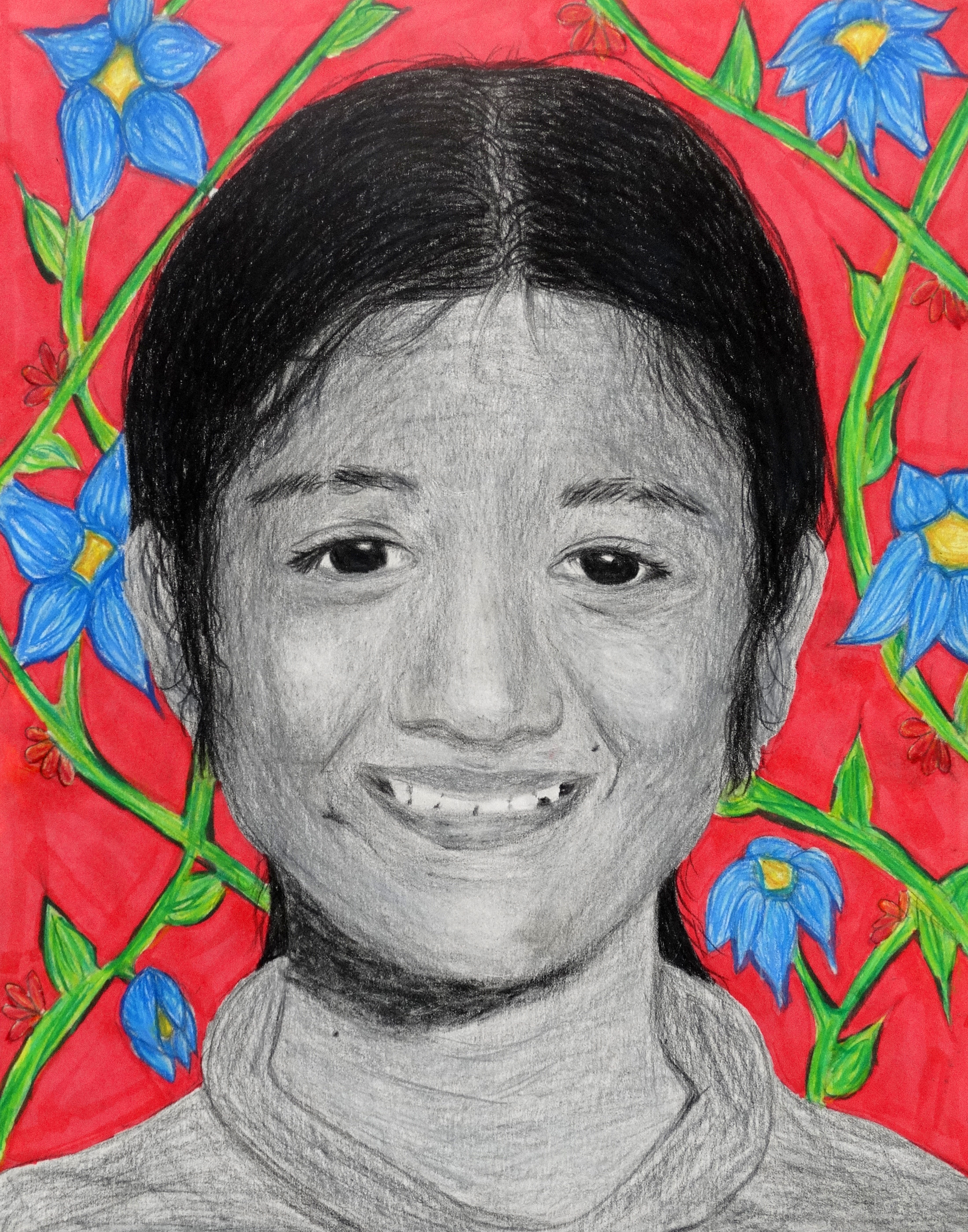 “Invited by The Memory Project, a nonprofit organization, and under the guidance of art teacher Jamie Schorsch, students created portraits for youth around the world who have faced substantial challenges, such as neglect, abuse, loss of parents, and extreme poverty. Completed portraits are sent to the students in their home countries.”