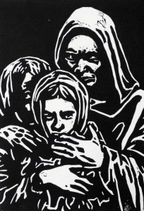 linoleum relief print; 7×5″