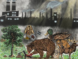 “Under the guidance of art teacher Stacey Battoclette, students at Rapid Run Middle School combined digital design and hand coloring to create artworks which aim to raise awareness and encourage viewers to reflect on their role in caring for the Earth and sustaining it for future generations.”