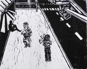 linocut print; 8×10”