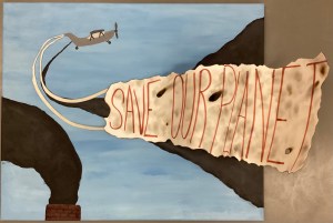 “The idea behind my artwork was to show what I believed was one of the worst things that has even happened to the world, especially since the creation of cars and automobiles. Pollution has been a devastating problem. Wiping out millions of years worth of ice and destroying other habitats for animals. Air quality had also depleted leading to breathing problems in heavily populated areas with lots of factories. I wanted to also show the hypocrisy of humans and say to save the planet while polluting it even more. I wanted to show my ability to use different styles in one piece. With a 2D background and a 3D foreground I wanted t o accomplish the main idea of the piece as the flag portraying a “Save Our Planet” letting but with the hypocrisy of the plane emissions and burning of the smoke stack. I feel as if I accomplished my goal to show others the real world dangers of things we see everyday and possible work at.”