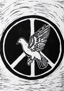 linoleum relief print; 7×5”