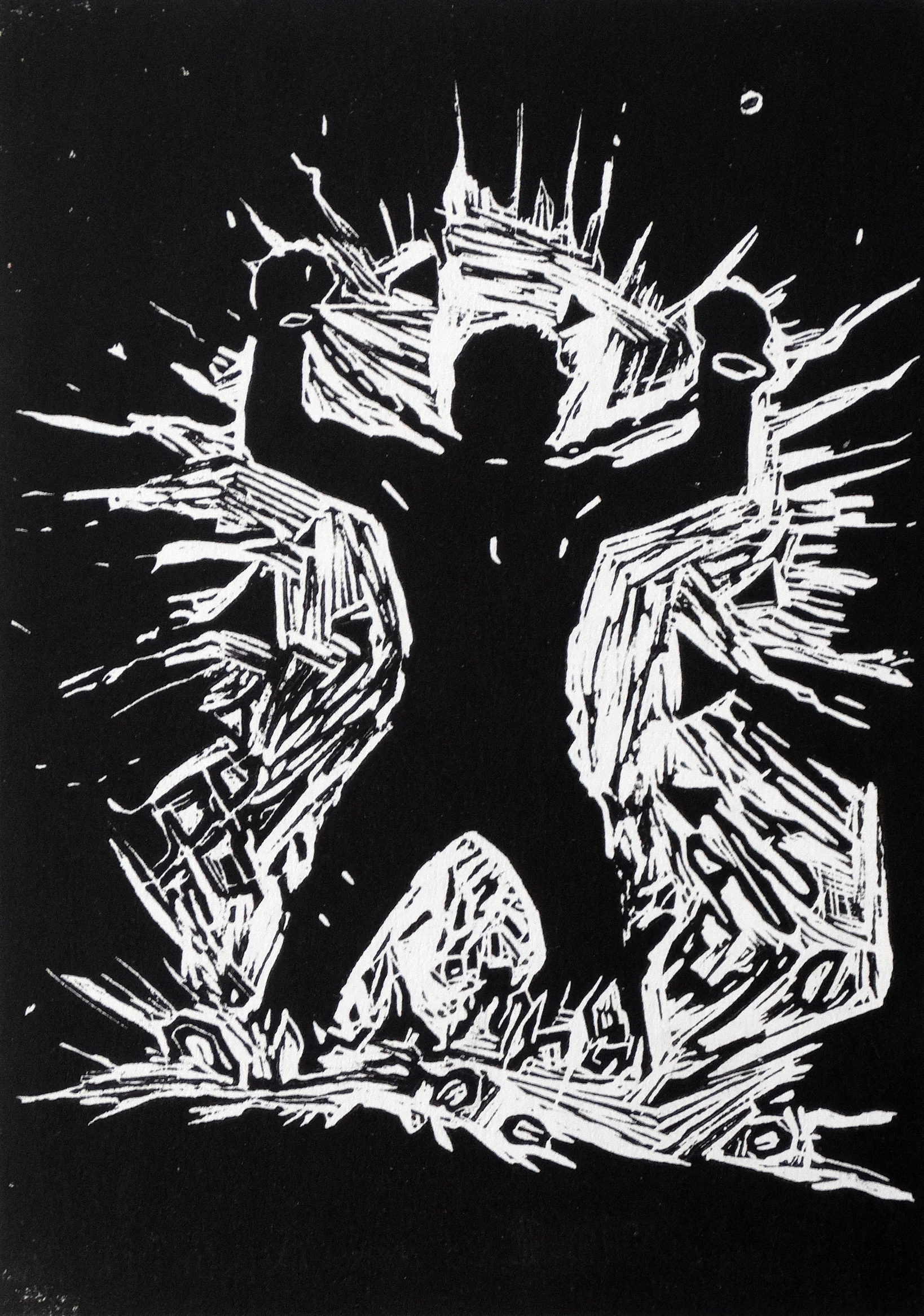 linoleum relief print; 7×5”