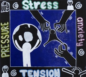 “Having learned about the graffiti style artwork of Keith Haring, and under the guidance of art teacher Steve Groh, students created a drawing in a similar style using symbolic imagery to communicate a message based on a social issue.”