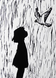 linoleum relief print; 7×5”