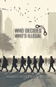 My poster addresses immigration justice by contrasting symbols of control and freedom. The chains represent man-mad systems, control, and restriction. While the birds already symbolize freedom, so make them work against the chains. The people walking for peace reflect collective action against the chains. The people walking for peace reflect collective action in the face of oppression. Together, these show that freedom is natural and should not be taken away, unfair systems can and should be challenged.