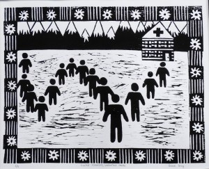 linocut print; 8×10”