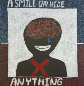 “Having learned about the graffiti style artwork of Keith Haring, and under the guidance of art teacher Melissa Ambs, students created a drawing in a similar style using symbolic imagery to communicate a message based on a social issue.”