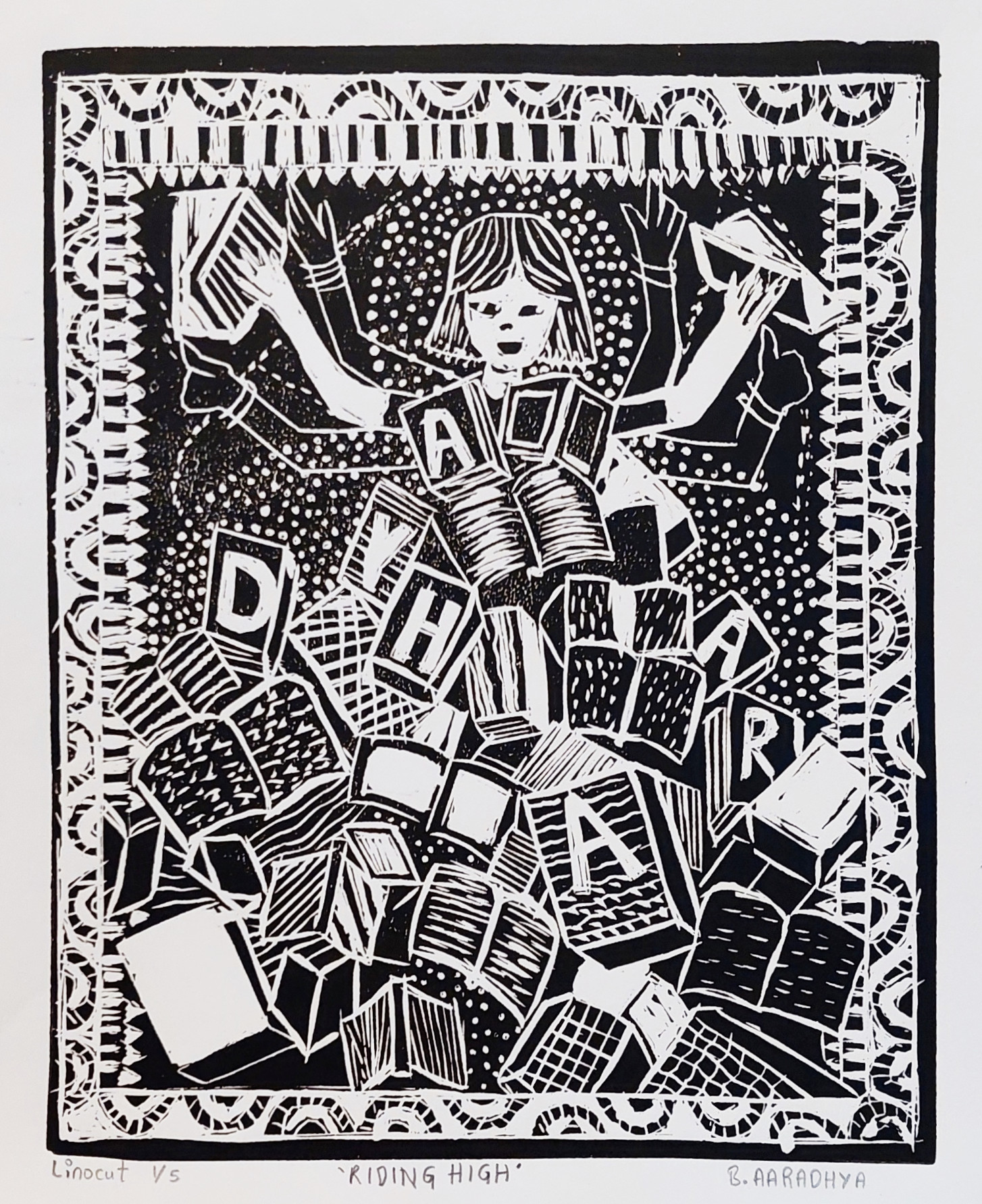 Artist Bio: B. AARADHYA is 13 years old and attends regularly Sanskriti rural Art Center in Hyderabad.