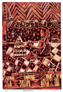 linocut print; 9.25×6.25”