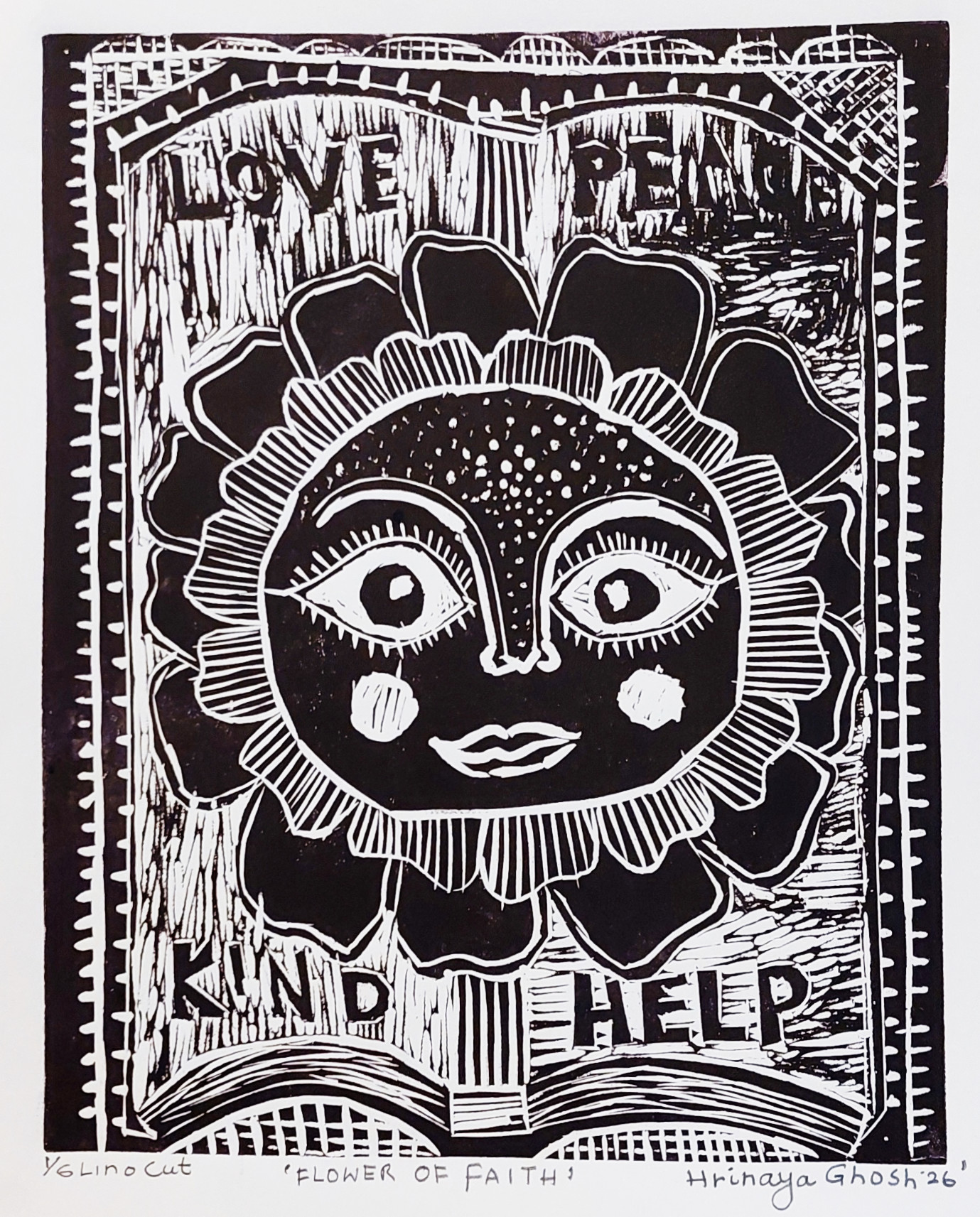 “I have symbolized the flower blooming with truth, hope, kindness. Truth and peace are necessary to everyone for a beautiful world.”
