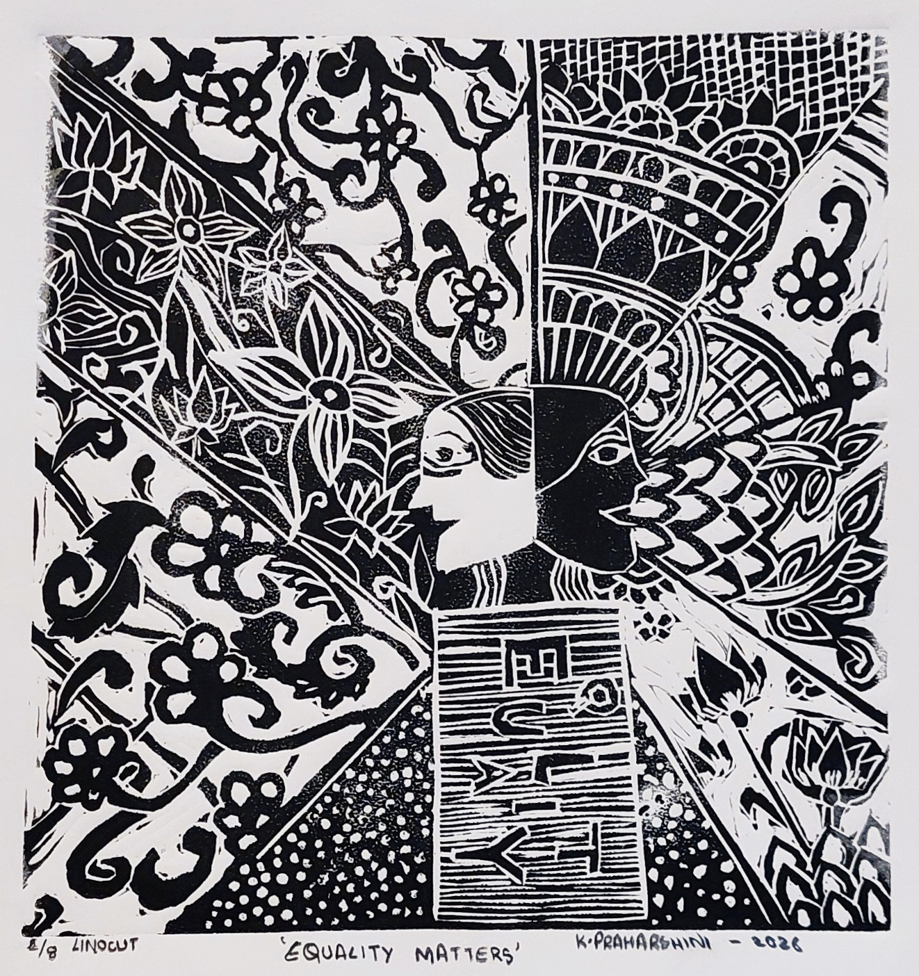 linocut print; 8.5×8”