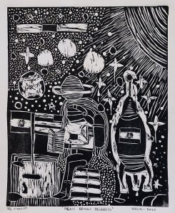 linocut print; 10×8.25”