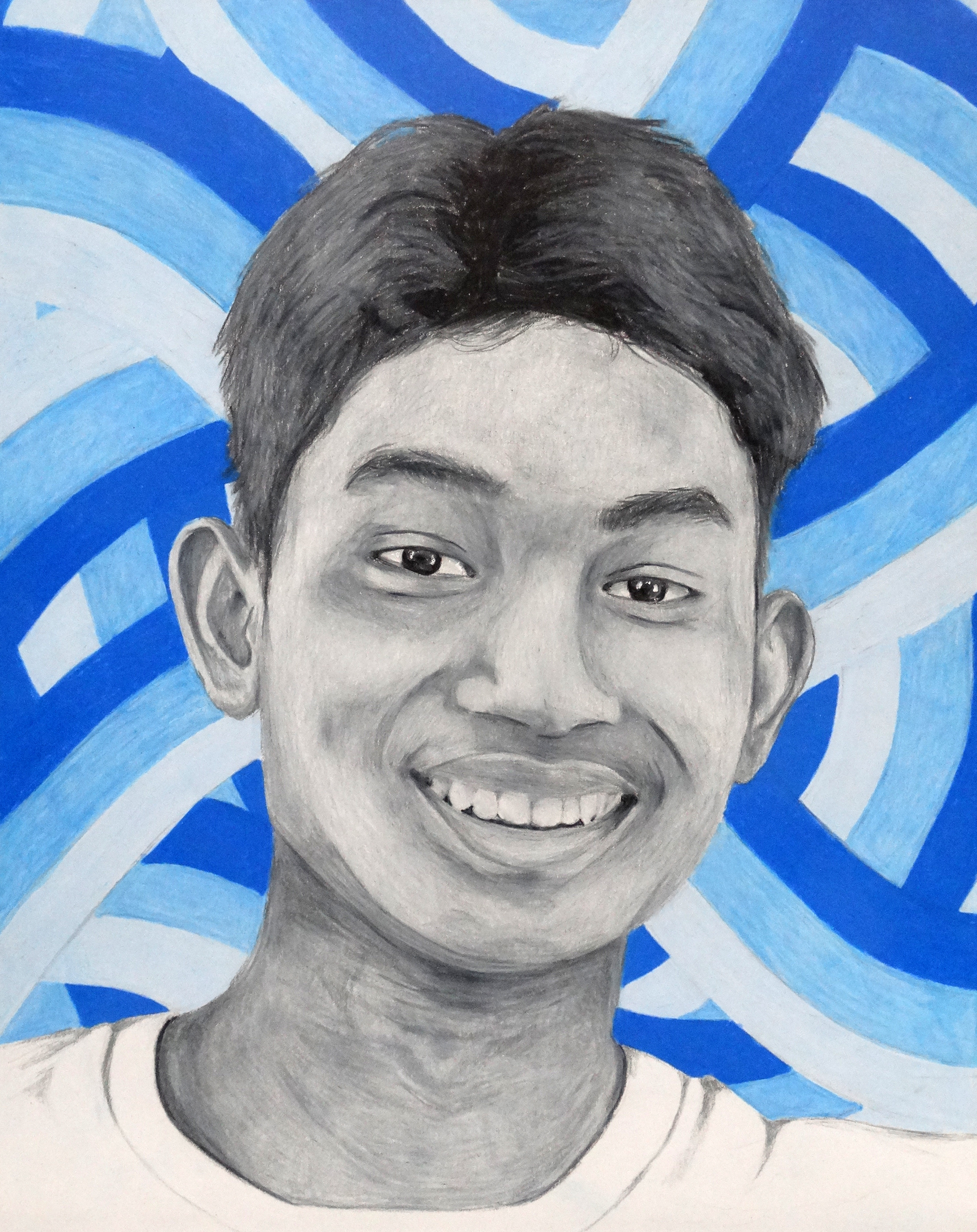 “Invited by The Memory Project, a nonprofit organization, and under the guidance of art teacher Jamie Schorsch, students created portraits for youth around the world who have faced substantial challenges, such as neglect, abuse, loss of parents, and extreme poverty. Completed portraits are sent to the students in their home countries.”