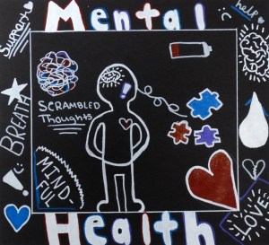 “Having learned about the graffiti style artwork of Keith Haring, and under the guidance of art teacher Steve Groh, students created a drawing in a similar style using symbolic imagery to communicate a message based on a social issue.”