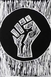 linoleum relief print; 7×5”