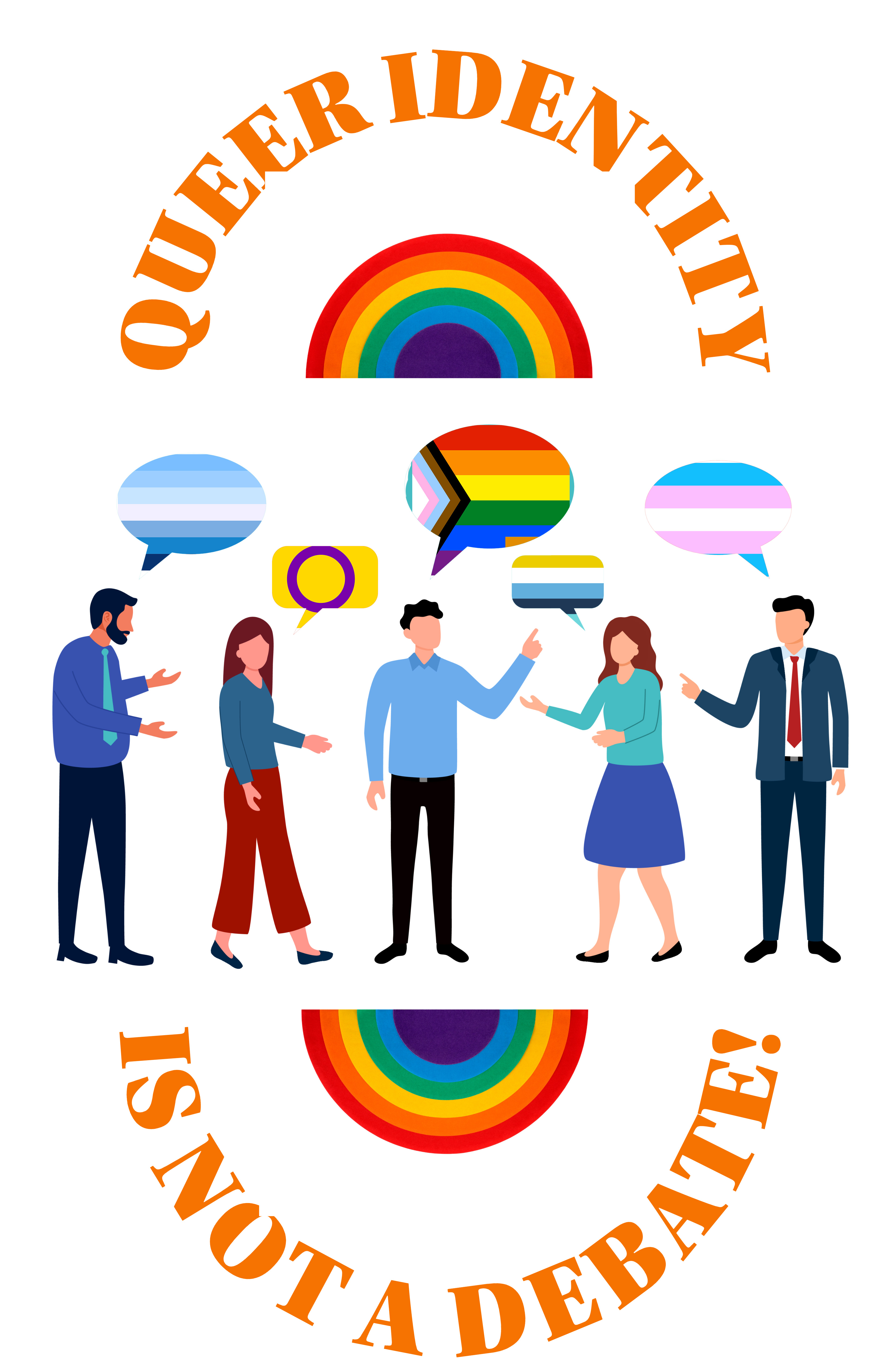 The concept of my poster is LGBTQIA+ equality. Being a queer person myself, I’ve always been passionate about dissolving discrimination and promoting peace. I used the preset of a debate because more often than not, people like to try and argue about whether or not queer people deserve to exist. That’s no argument at all; everybody has the exact same right to exist on this planet. I included different pride flags like intersex, aromantic asexual (aroace), transgender, and gay. I also put in the progressive pride flag. This poster portrays the idea that everybody should be able to talk freely about being LGBTQIA+ and being an ally to each other. In times when the rainbow community is under attack, unity, equality, peace, and love are our biggest tools.”