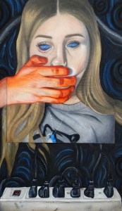 acrylic paint, prismacolor pencil, oil pastel; 20×16”