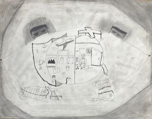 graphite, ink; 16×20″