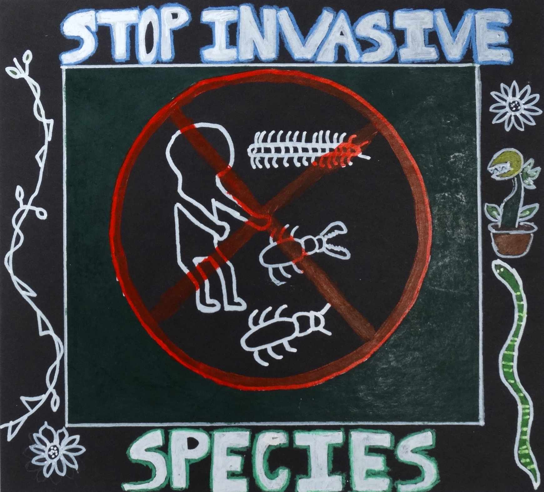 acrylic marker on black construction paper; 10×10”