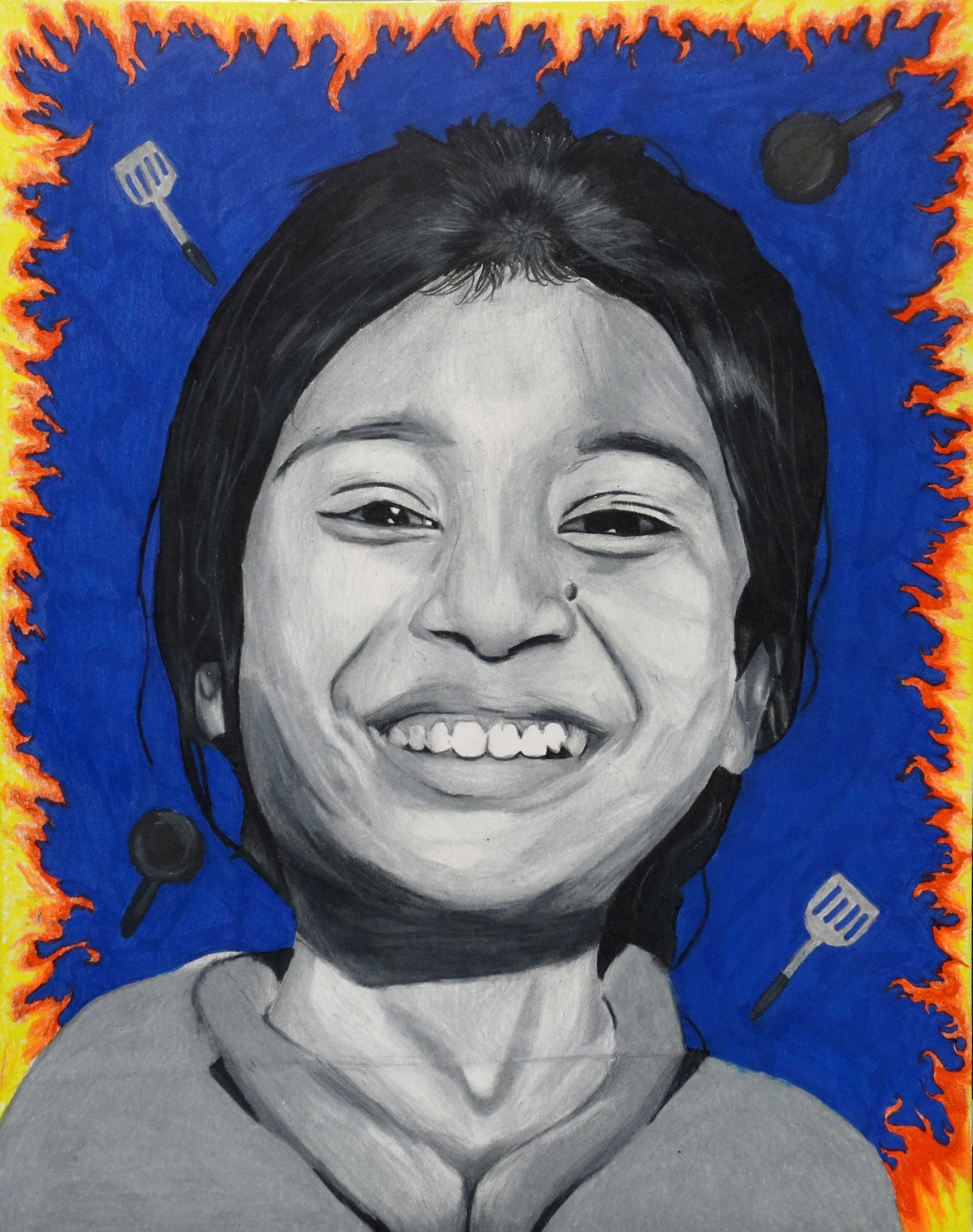 “Invited by The Memory Project, a nonprofit organization, and under the guidance of art teacher Jamie Schorsch, students created portraits for youth around the world who have faced substantial challenges, such as neglect, abuse, loss of parents, and extreme poverty. Completed portraits are sent to the students in their home countries.”
