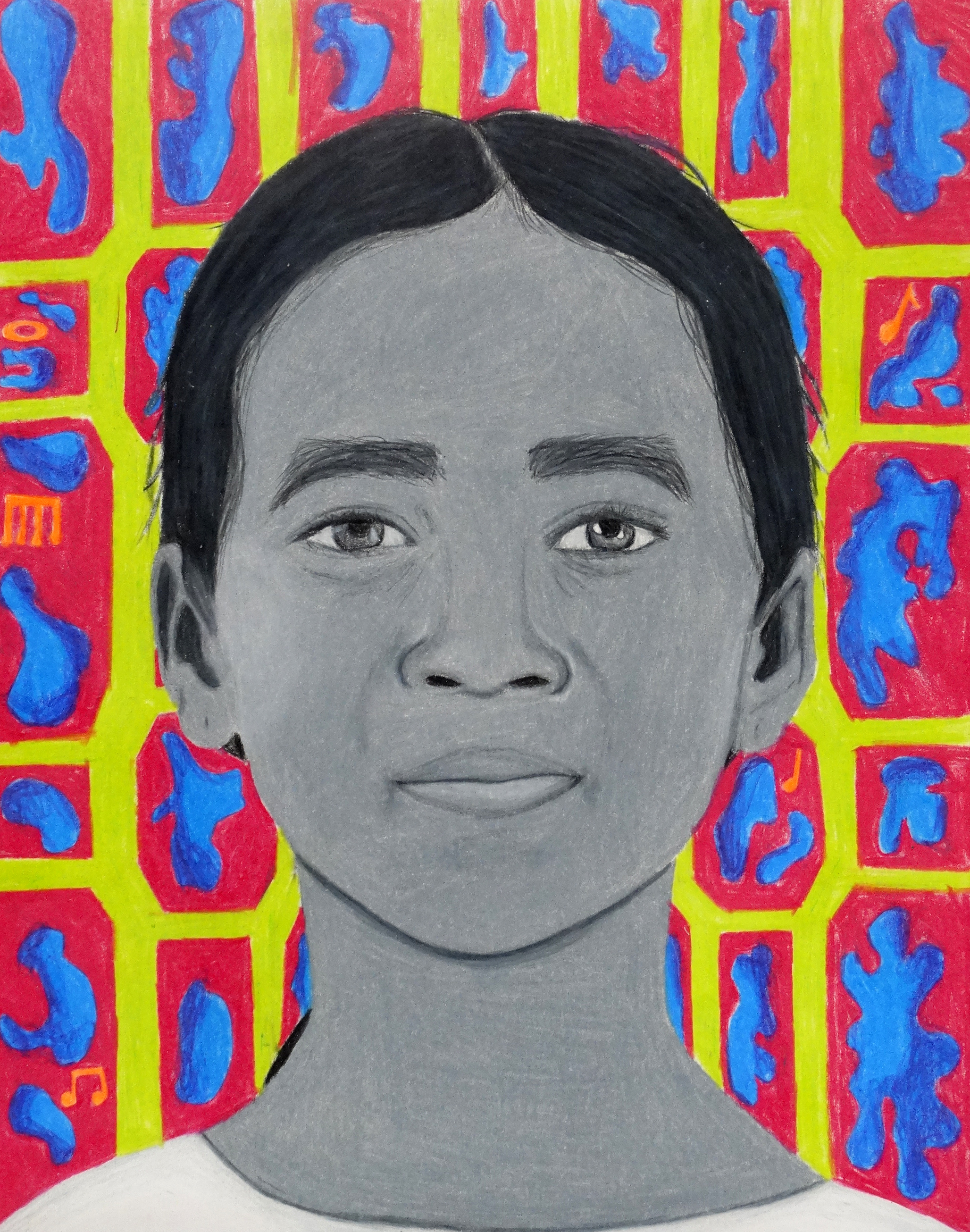 “Invited by The Memory Project, a nonprofit organization, and under the guidance of art teacher Jamie Schorsch, students created portraits for youth around the world who have faced substantial challenges, such as neglect, abuse, loss of parents, and extreme poverty. Completed portraits are sent to the students in their home countries.”