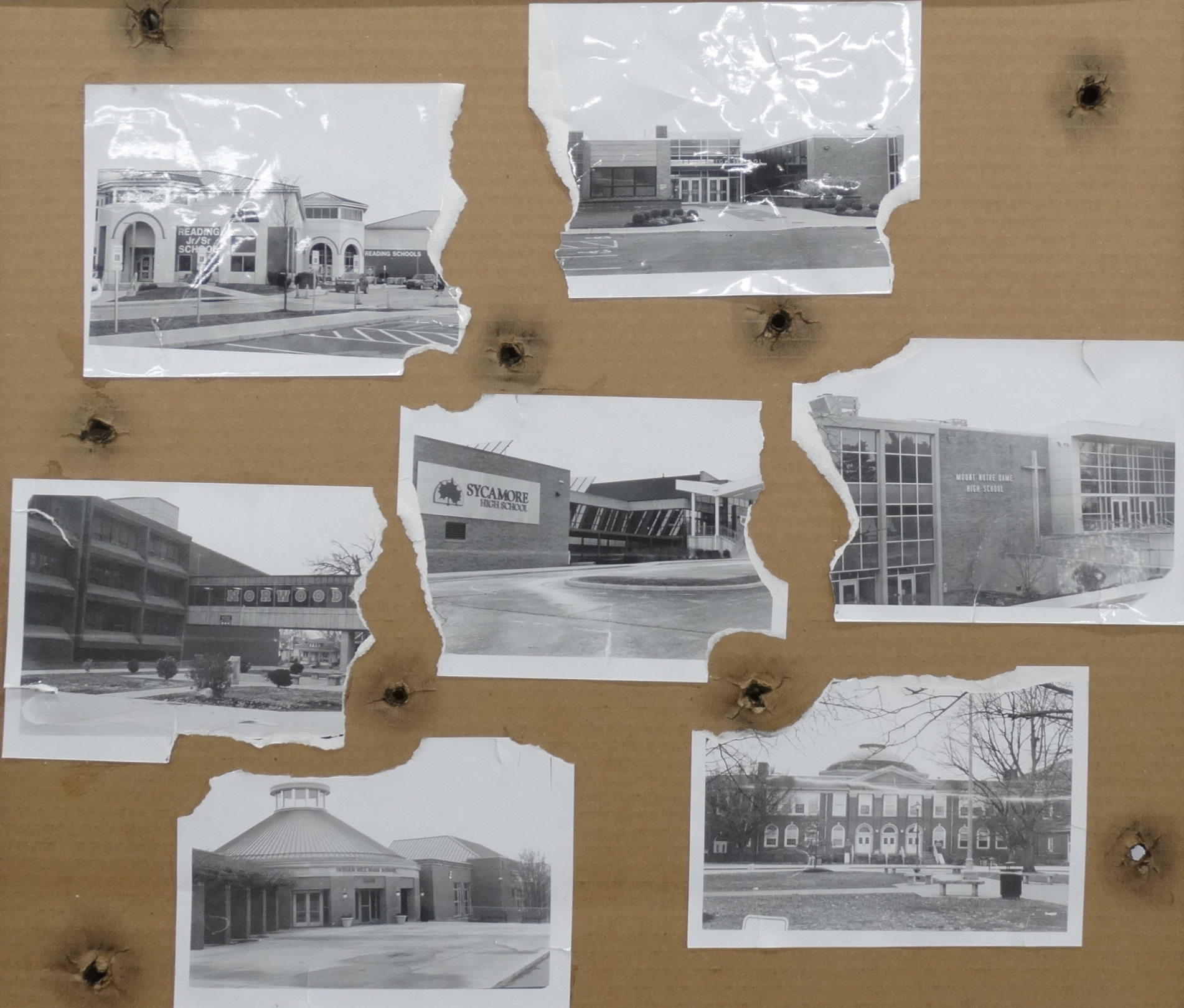 “This piece is about striving for equality within our school systems. Every child should have equal access to a safe education regardless of background, district, or age. Although only seven schools are depicted in this piece – Reading High School, Madeira High School, Norwood High School, Sycamore High School, Mount Notre Dame High School, Indian Hill High School, and Walnut Hills High School, a school shooting could happen anywhere at any given time. Whether a school is public or private, urban, or suburban, the threat remains a shared American reality. In the United States you are 57 times more likely to be in a school shooting than other major industrialized nations. We are living in the only nation where ‘back-to-school’ prep often includes active shooter drills. Access to a safe education is a fundamental right, not a luxury.”