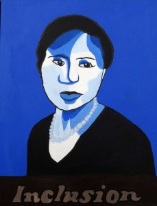 “Under the guidance of Jamie Schorsch, Studio Art Foundations students created “Influential Icons”, synthesizing the style of Andy Warhol and Shepard Fairey. They selected an individual who impacted and influenced society in a positive way and chose a term that is a descriptor of the actions, or character, of their icon to be included in the work as well.”