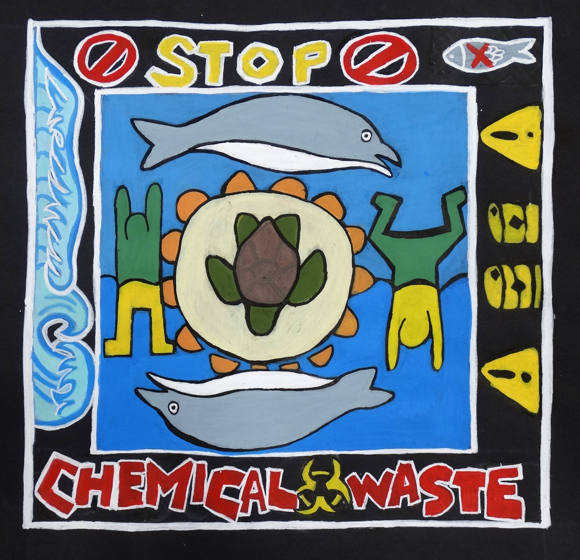 acrylic marker on black construction paper; 10×10”